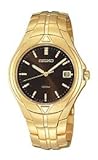 - Gold-tone-stainless-steel case; Dark-brown dial; Date function