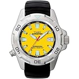 This Timex is a great watch. It keeps good time, looks sharp, and generally feels tough. The band is solid and comfortable, and seems almost fused to the watch. Although I have a smallish wrist, the size does not feel out of scale. It has a large easy to read dial, the Indiglo feature, luminescent hands, and a date window. I get compliments from nearly everyone who sees it; the yellow really stands out. While I might have preferred darker hands to contrast the yellow dial, seeing the time clearly has never been an issue at all. This is a quality watch at a great price, and I can recommend it to any man looking for something special to wear on his wrist. And I would be remiss if I didn't say that this watch would make a great gift. I like what it says about Timex, and I like what it says about me.